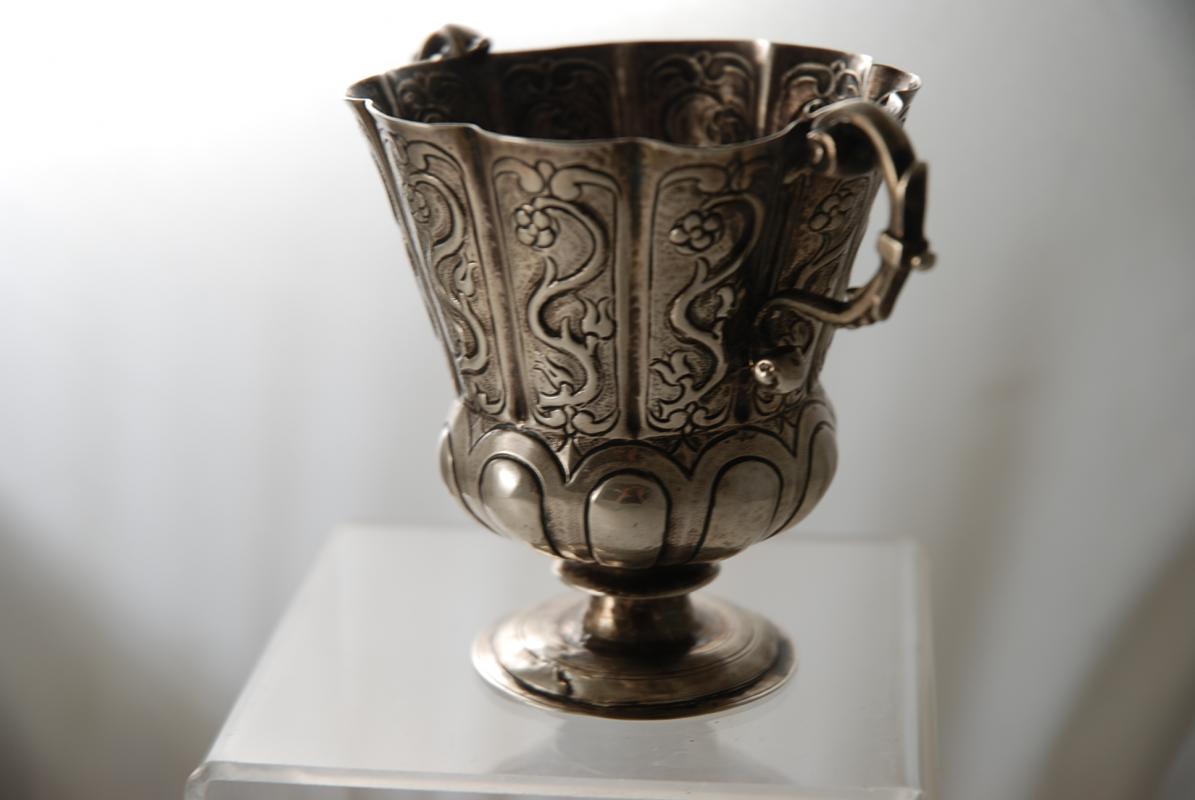 This 17th century Spanish silver cup is in excellent condition. It stands 9cm tall.