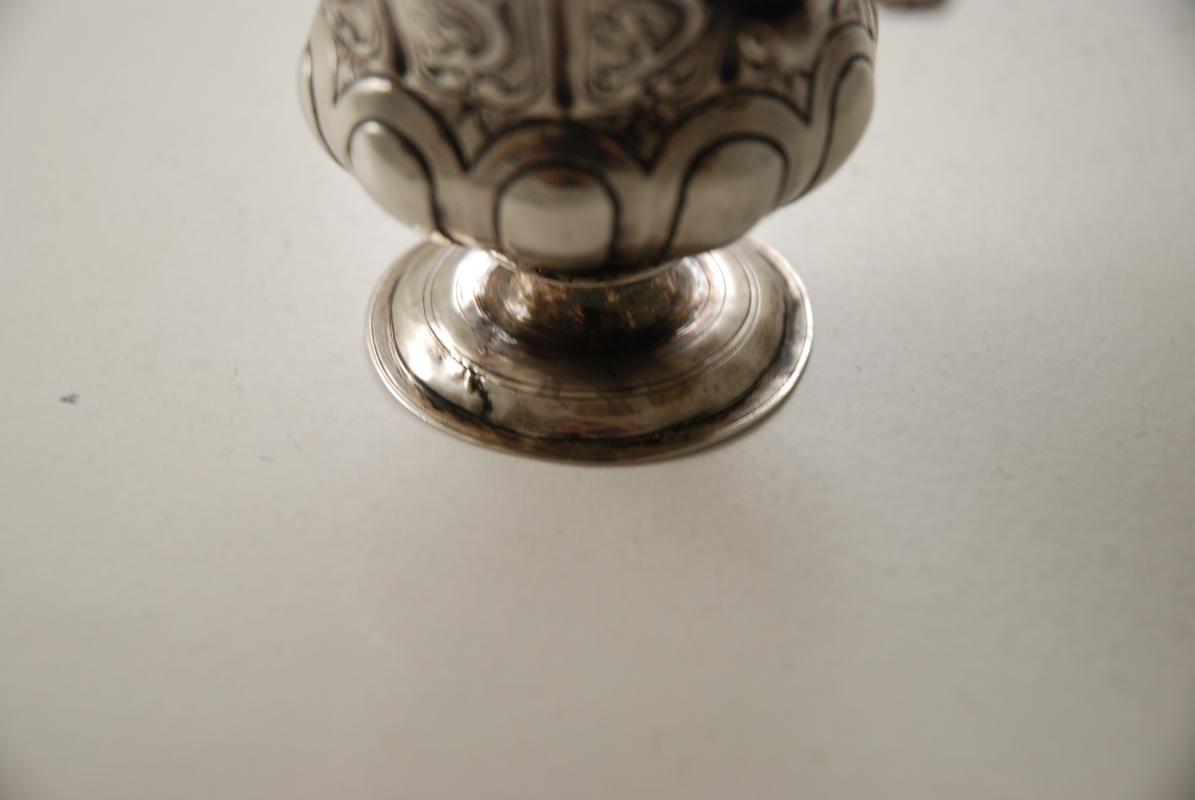 This stunning piece of 17th Century Silver was made in Spain circa 1680. It is of campana form with a lobed base and elegant baroque scrolls along the chamfered panels. the handles are cast and applied.