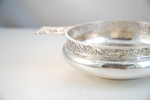 This fine silver Quaiche was made by R E Stone, the renowned Art Deco silversmith. It is hand made, and inset with a silver crown for 1935, and......
