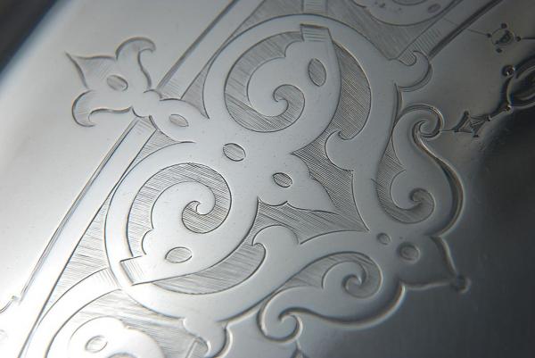 This beautiful Engraved, Victorian Silver Plate Tray was made c1870.